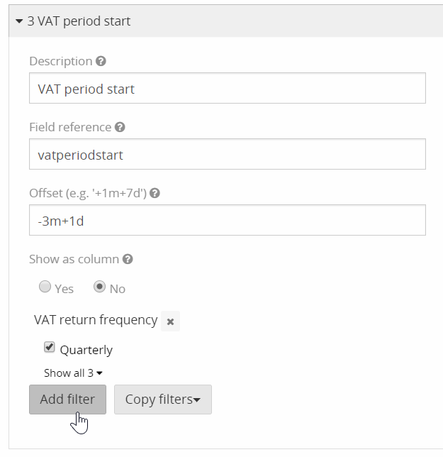 7. Filters: you can also add filters for this key date, so that it only displays when certain parameters apply to a client.